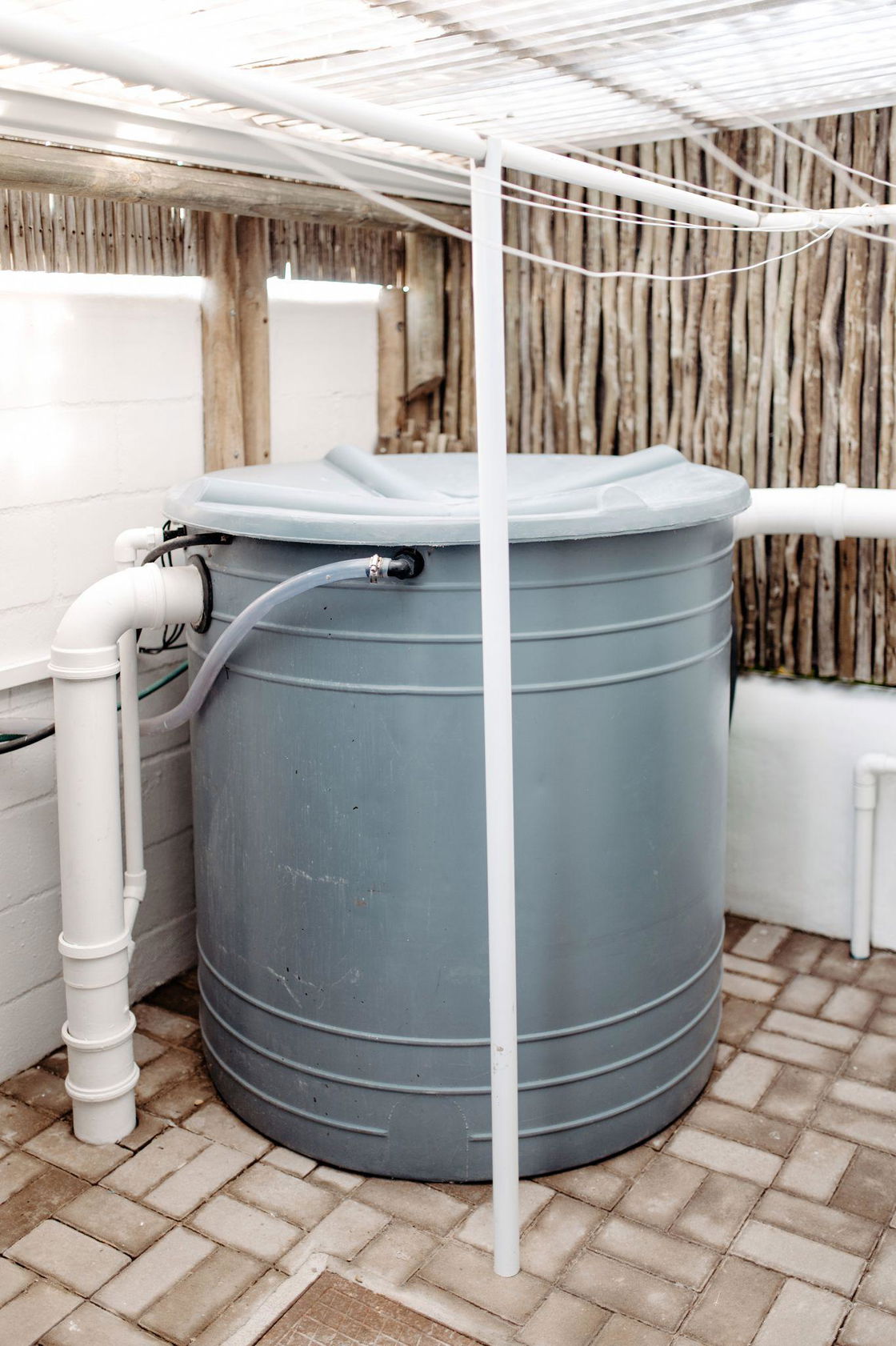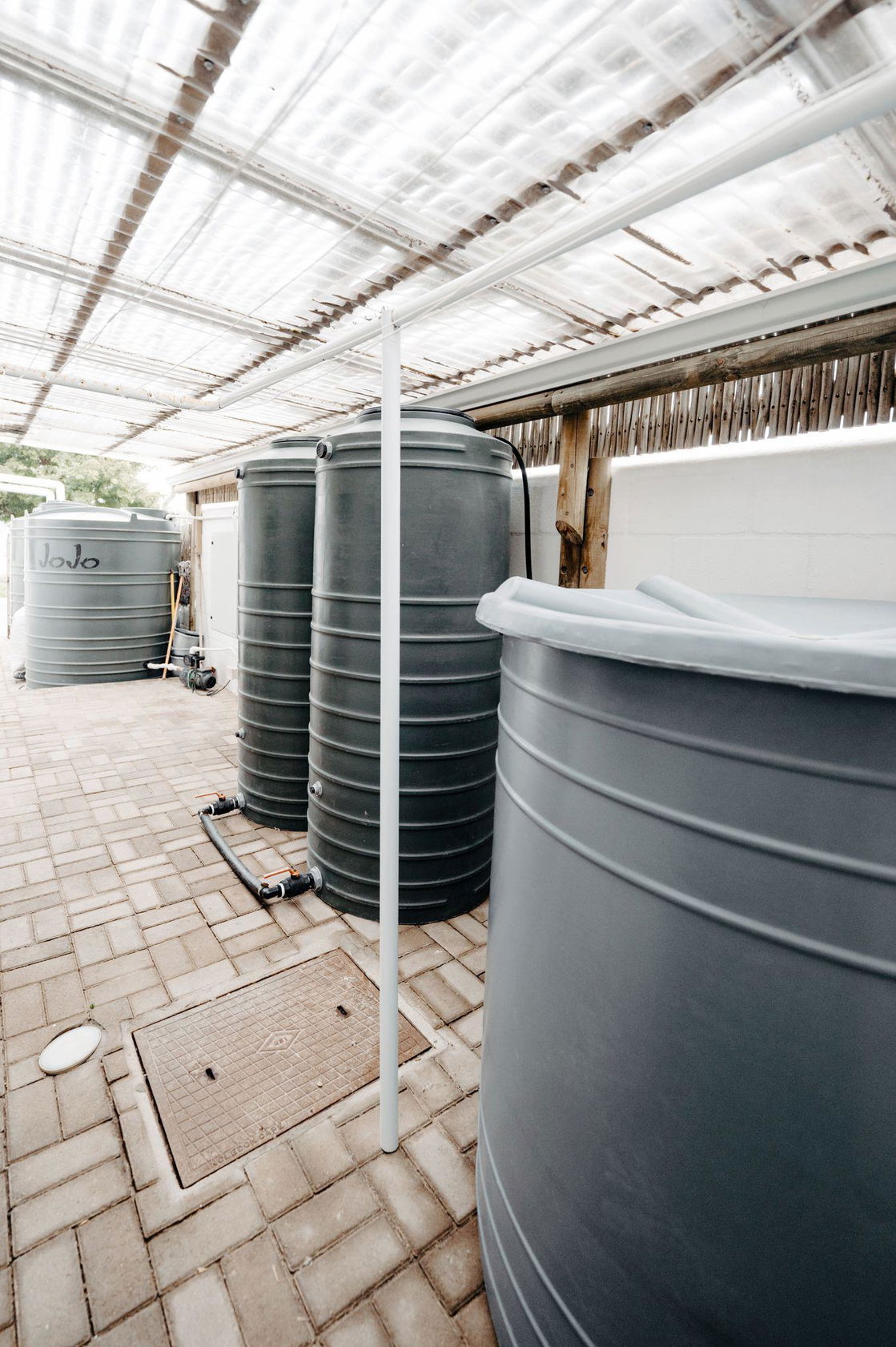 - All roofs have rain-harvesting gutters.