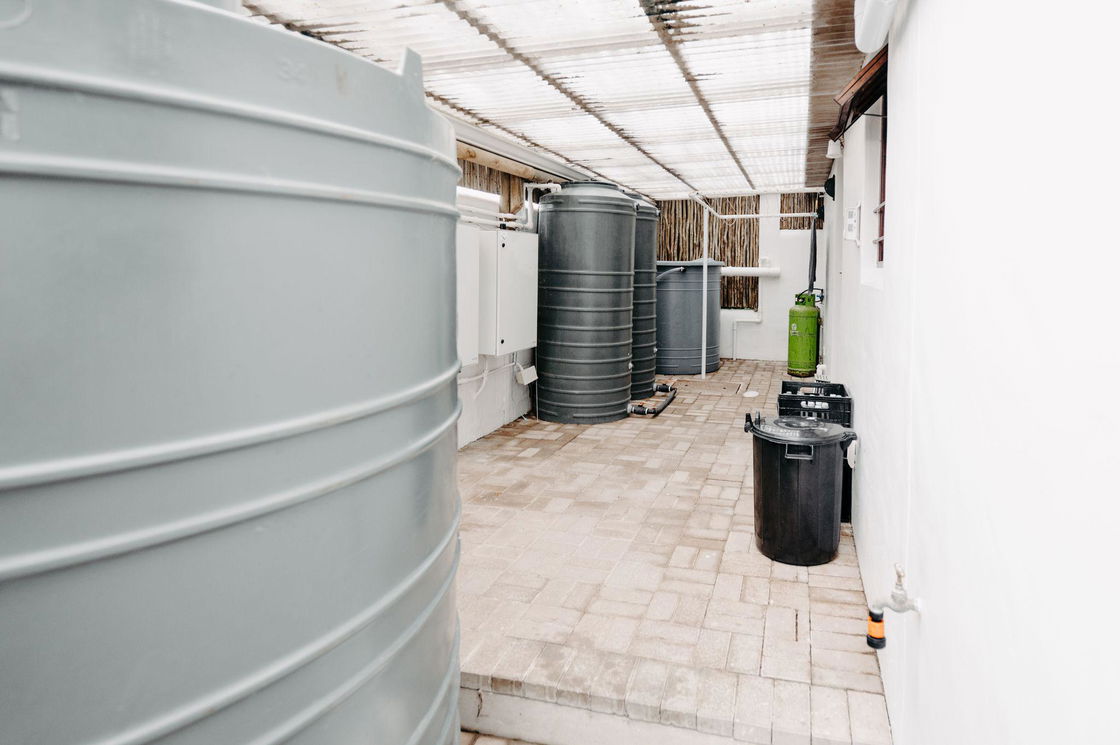 - All water harvested from showers, basins, dishwashers, and washing machine water is used for irrigation.