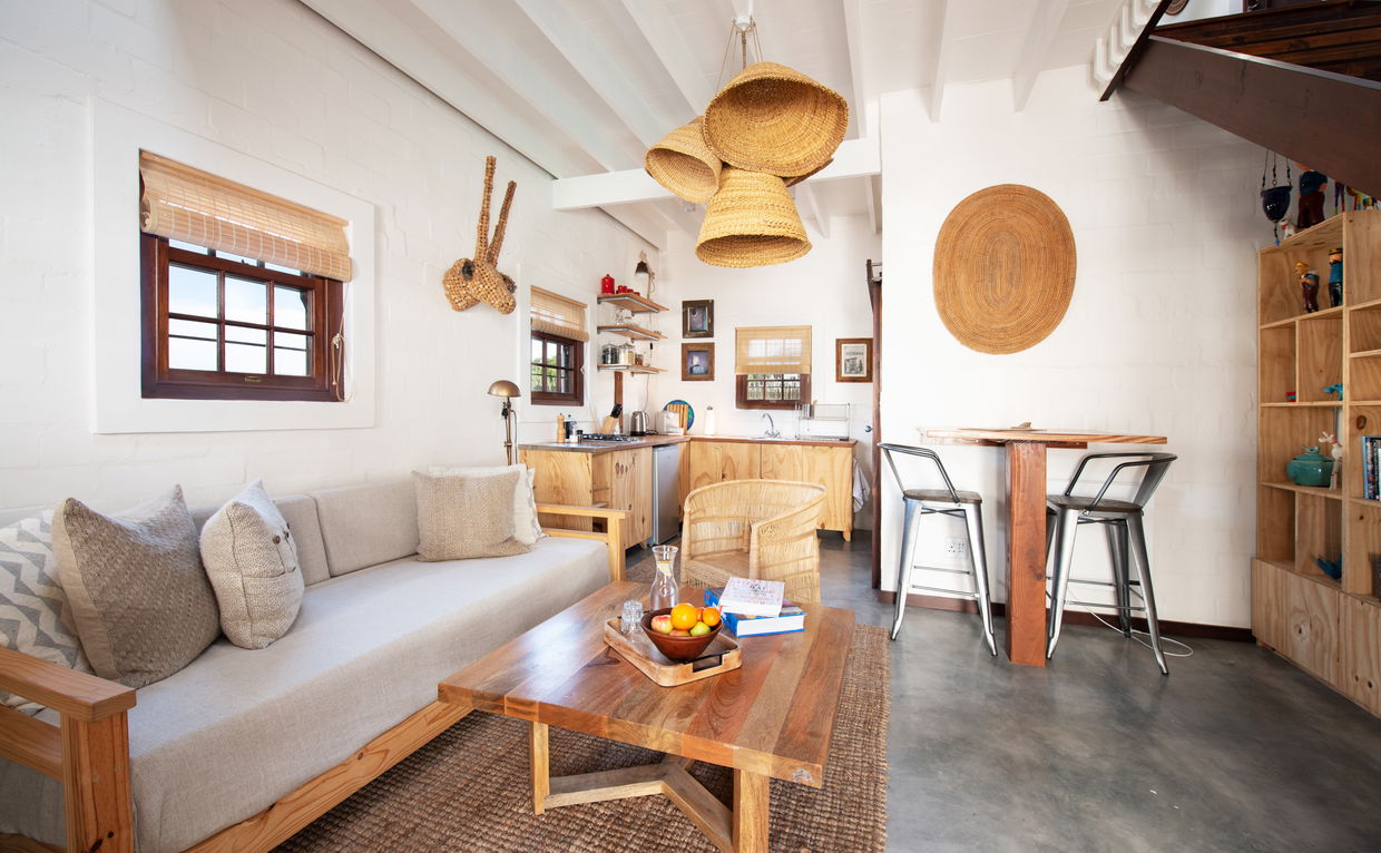 At the entrance to our Guesthouse - and right next to our pool loungers - you’ll find the Apartment. The double-storey space includes our signature Afro-Scandi design with the bedroom located upstairs. Downstairs is a bathroom, seating area, intimate kitchenette and an extra single day bed. While you are welcome to cater for yourself, there is a delectable organic breakfast served daily just up the stairs.