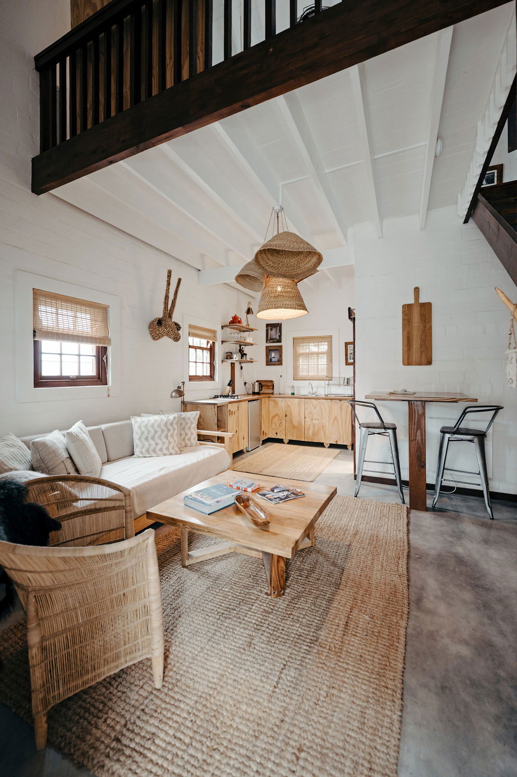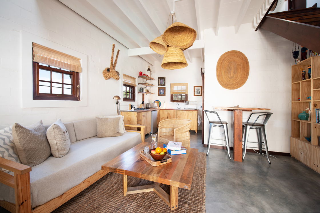 At the entrance to our Guesthouse - and right next to our pool loungers - you’ll find the Apartment. The double-storey space includes our signature Afro-Scandi design with the bedroom located upstairs. Downstairs is a bathroom, seating area, intimate kitchenette and an extra single day bed. While you are welcome to cater for yourself, there is a delectable organic breakfast served daily just up the stairs.